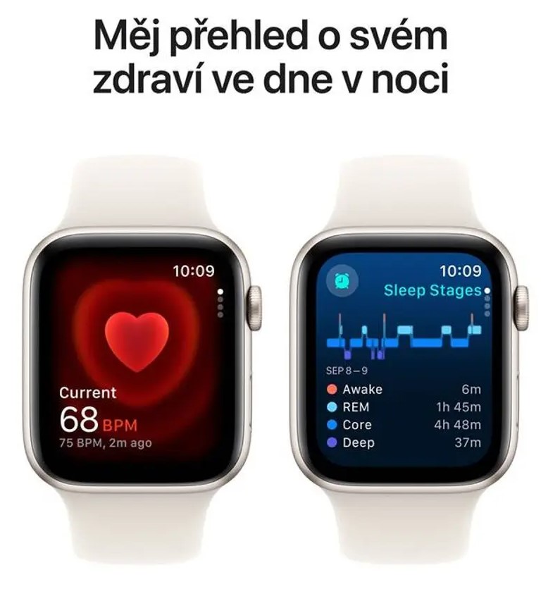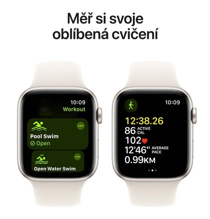 Hliníkové pouzdro ve starlight provedení pomáhá udržet hodinky lehké a pohodlné i při celodenním nošení. Právě menší 40mm varianta bývá vhodná pro uživatele, kteří chtějí decentnější velikost na ruce, ale nechtějí se vzdát chytrých funkcí Apple Watch. V kombinaci s řemínkem Sport Band ve velikosti S/M jde o velmi praktickou konfiguraci pro každodenní používání.