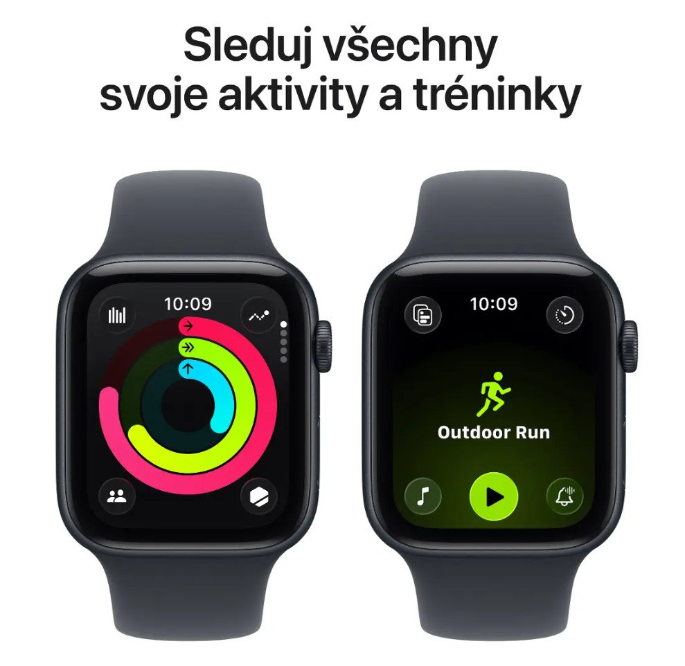 Stylové chytré hodinky pro každý den. Apple Watch SE v 44mm provedení kombinují moderní design, intuitivní ovládání a praktické funkce, které usnadňují každodenní život. Hliníkové pouzdro v barvě Midnight doplňuje sportovní řemínek pro pohodlné nošení.