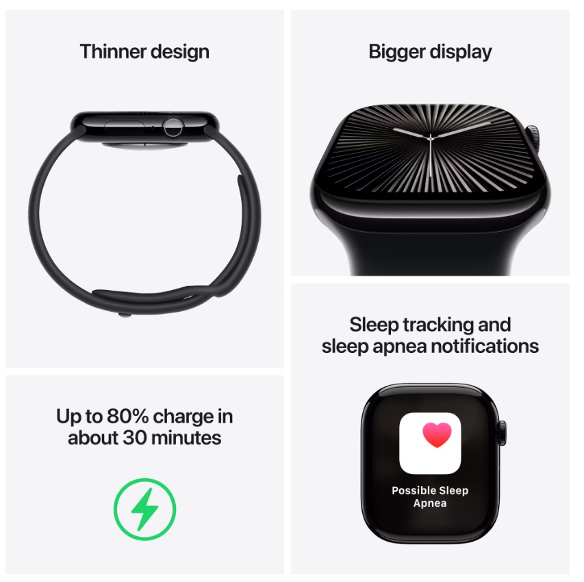 Apple Watch Series 10 patří mezi moderní generaci hodinek s důrazem na tenčí, lehké a vizuálně čisté provedení. V této 42mm konfiguraci je hlavní výhodou kombinace kompaktních rozměrů, pohodlí a atraktivního vzhledu bez zbytečné robustnosti.
