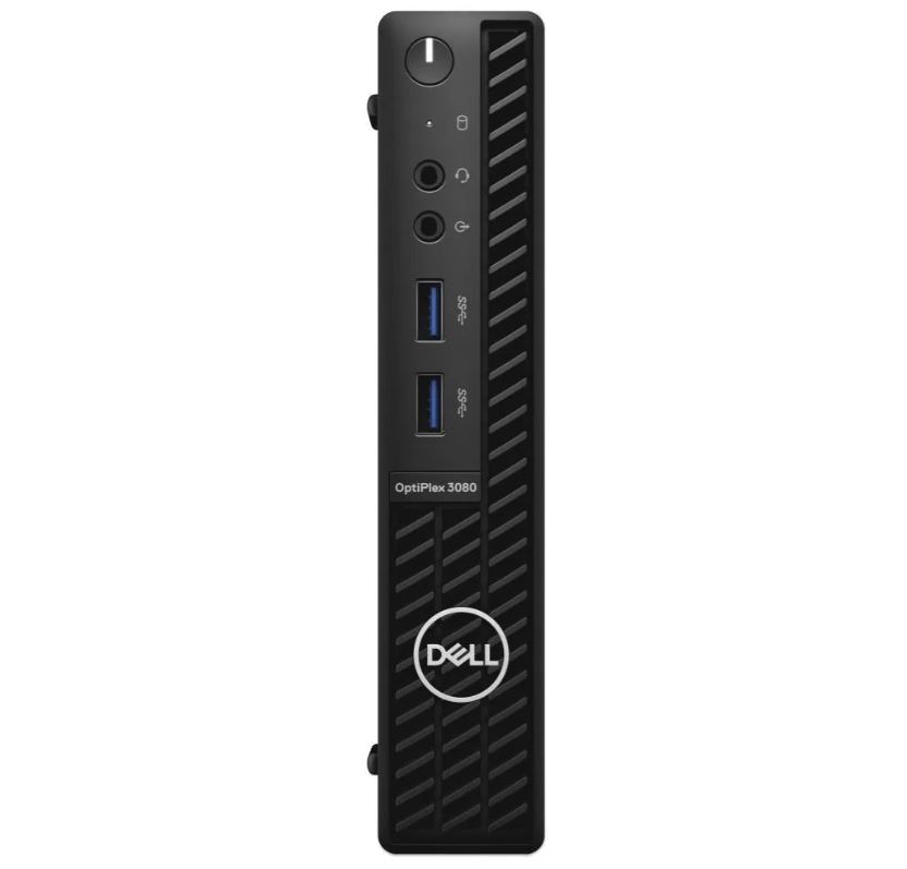 Pro připojení dalších zařízení poslouží u mini počítače Dell solidní sada konektorů. Základem je běžné rozhraní USB 2.0 u 2 konektorů a USB 3.2 Gen1 (USB 3.0), jenž je k dispozici 4×. Pro připojení k internetu má počítač k dispozici LAN port. Zvuková zařízení je možné připojit do kombinovaného Jack konektoru. Pro potřeby monitoru je v případě mini počítače Dell OptiPlex 3080 Micro MFF k dispozici HDMI a DisplayPort.