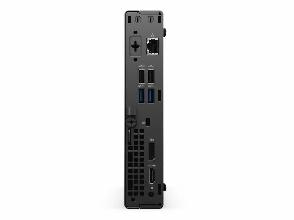 Velkou výhodou tohoto modelu je velmi kompaktní provedení Micro, které šetří místo na pracovním stole. Přesto nabízí dostatek konektorů pro každodenní použití, mezi které patří USB porty, DisplayPort pro připojení monitoru, síťový port LAN a audio konektory. Díky tomu lze snadno připojit klávesnici, myš, externí disk, monitor nebo další periferie.