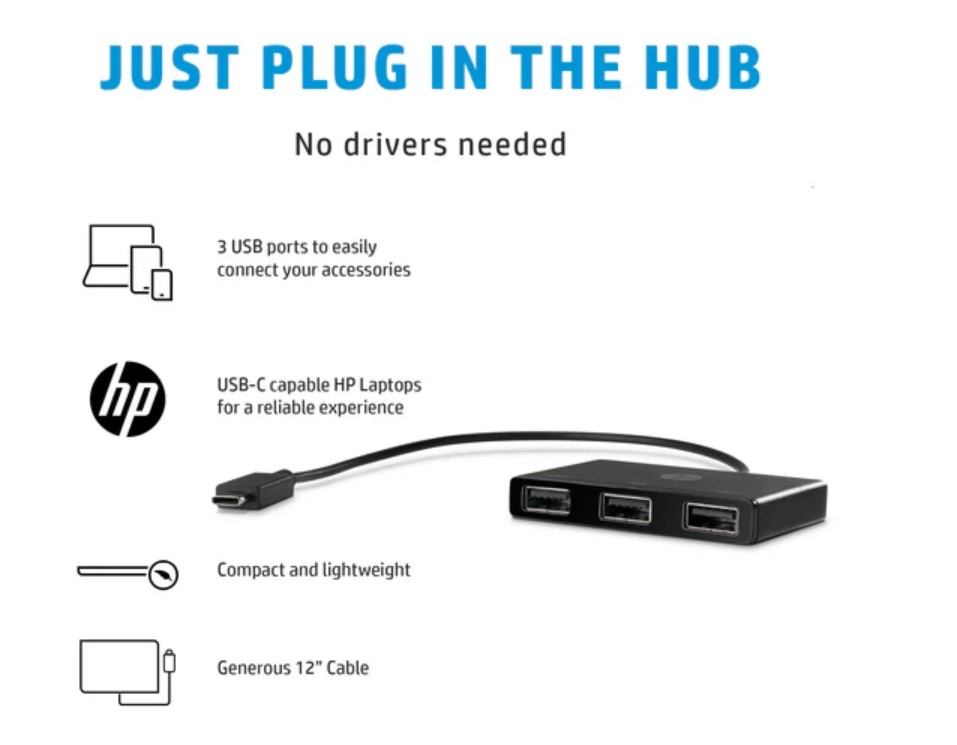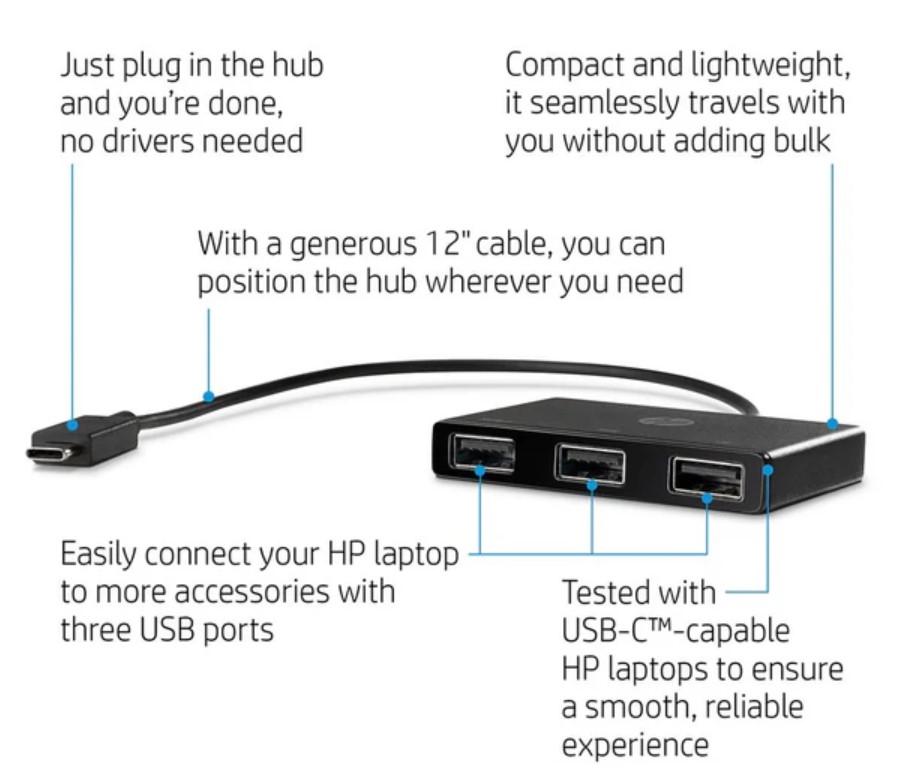 Kompaktní USB-C rozbočovač, který okamžitě rozšíří konektivitu vašeho notebooku nebo tabletu. HP USB-C Hub umožňuje připojit až tři USB zařízení současně a proměnit jeden port USB-C na praktický rozbočovač pro každodenní práci.