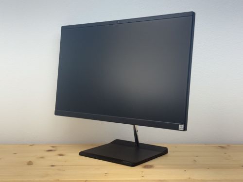 Integrovaný 23,8″ IPS displej s Full HD rozlišením (1920 × 1080 px) nabízí ostrý obraz, věrné barvy a široké pozorovací úhly. Je ideální pro dlouhodobou kancelářskou práci, práci s dokumenty, tabulkami i sledování multimédií.